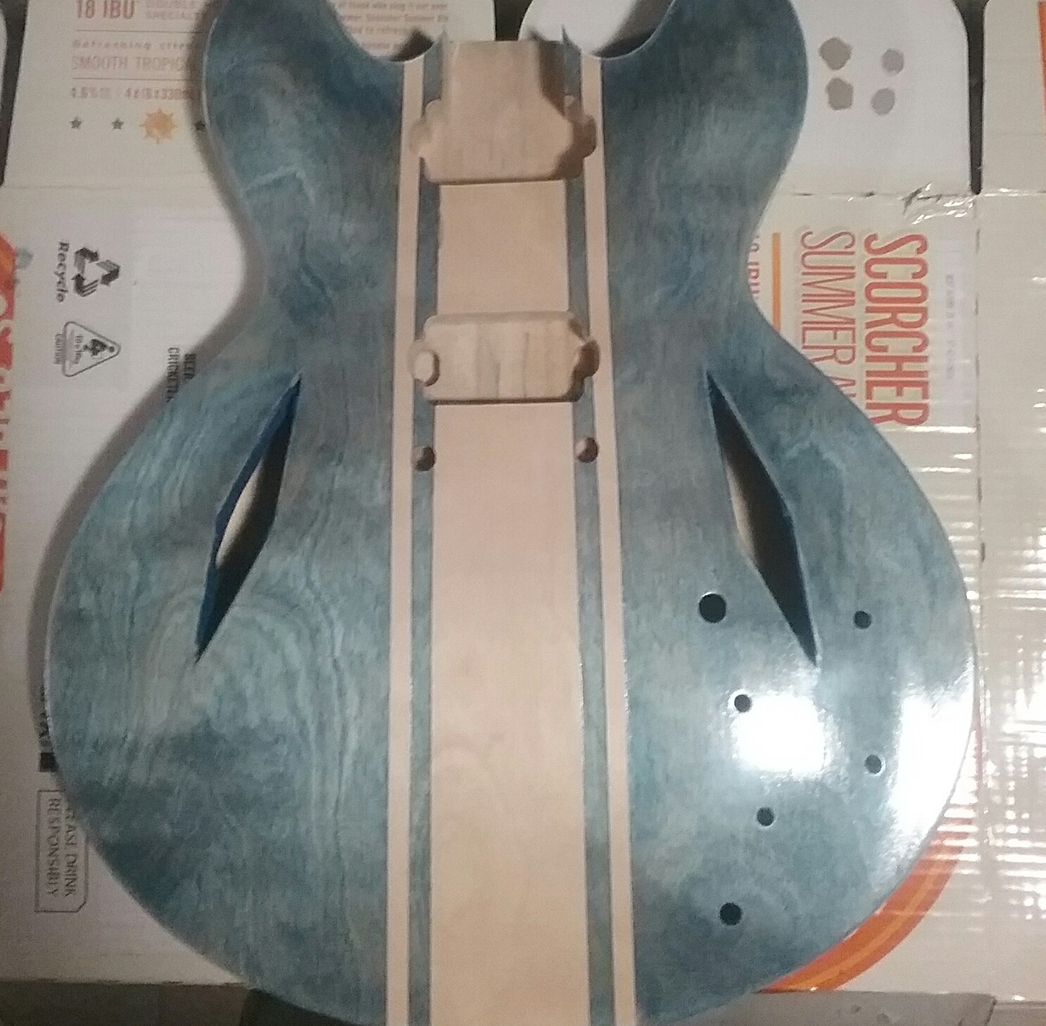 Yeah man! That looks killer. The blue/natural contrast is really, really nice. Great job. I'm looking forward to seeing the clear coats really bring the colour out. Are you planning chrome or gold hardware?