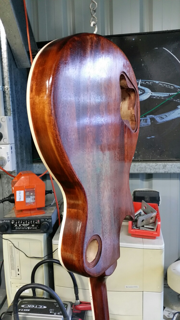 Had a look today to see how well the Shellac had set and it seems to have gone reasonably hard, so considering that tomorrow will be a busy day for me at the Wowan car rally I decided to set the neck this afternoon once temps get below 25C.