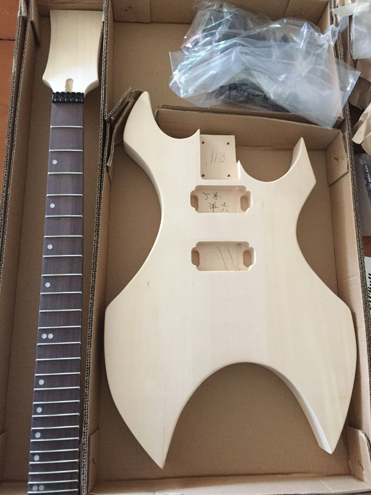 A standard bass neck could be made to work with a slight adjustment of the bridge position i.e. get a standard fretless neck fretted for 30" scale, but I then feel that such a long neck would certainly make the guitar very neck heavy indeed. Yes, you can certainly cut down the paddle headstock to a much smaller shape, which will help; but I don't know if that would be enough.