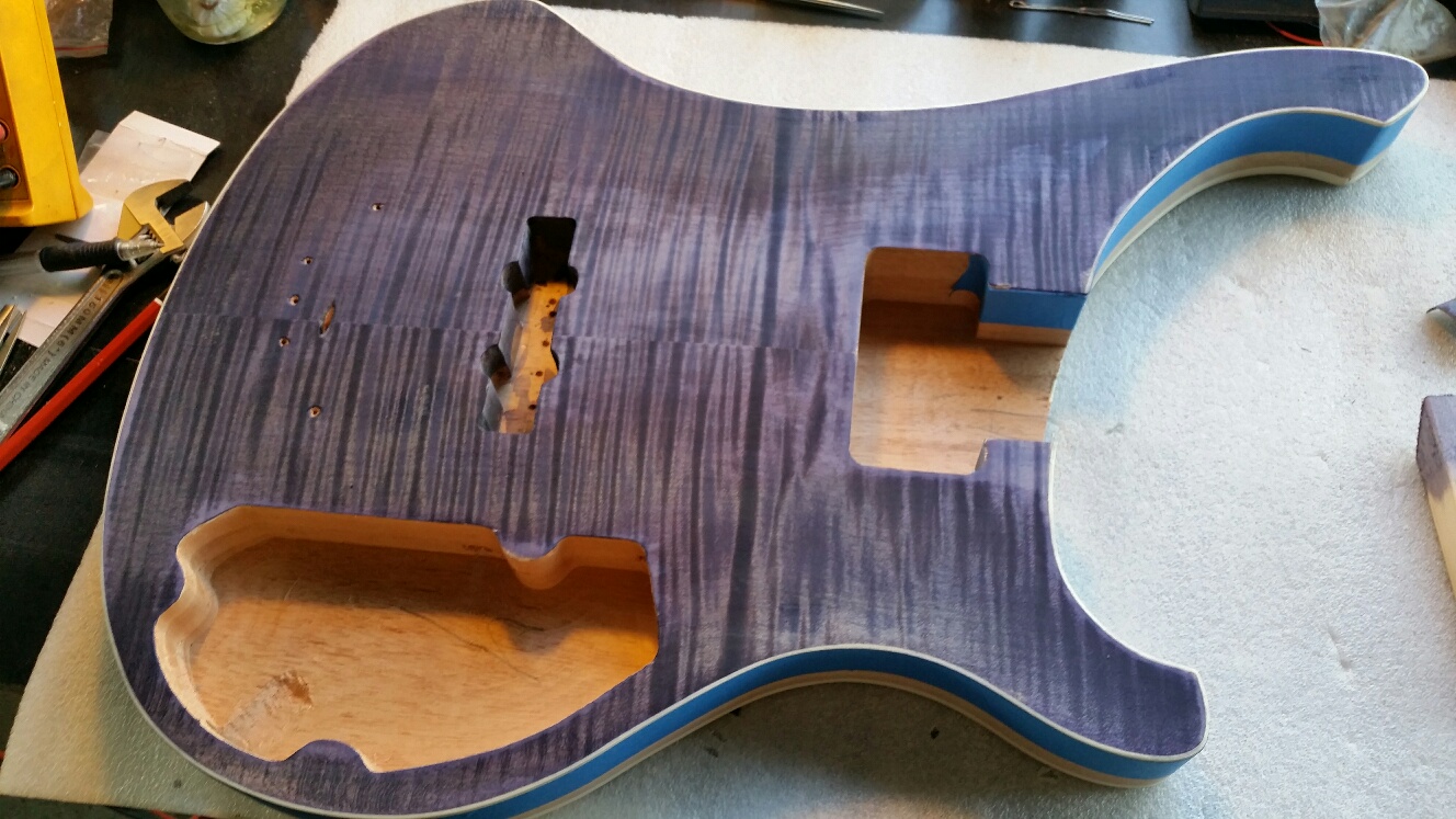 Most of my colours are quite strong on light coloured woods like maple so I do tend to do fewer coats. My LP-1SSP was only one coat with a number of damp cloth wipe offs and once the shellac was applied it still came out IMHO quite dark. The ES-1TL had about 4 coats being one of Light Green and then 3 of Blue of which the 3rd and 4th coats had very little and then virtually nil overall effect.
