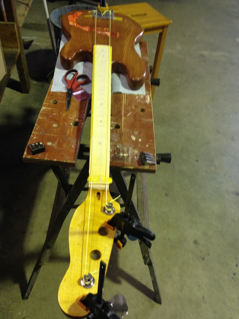 The E and G string Gotoh tuners are clamped in, I'm still lacquering the headstock so I didn't want to fit the tuners yet.