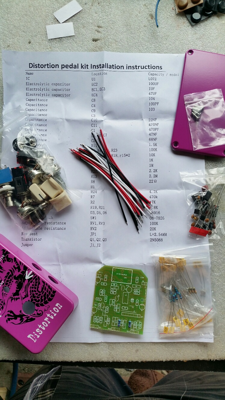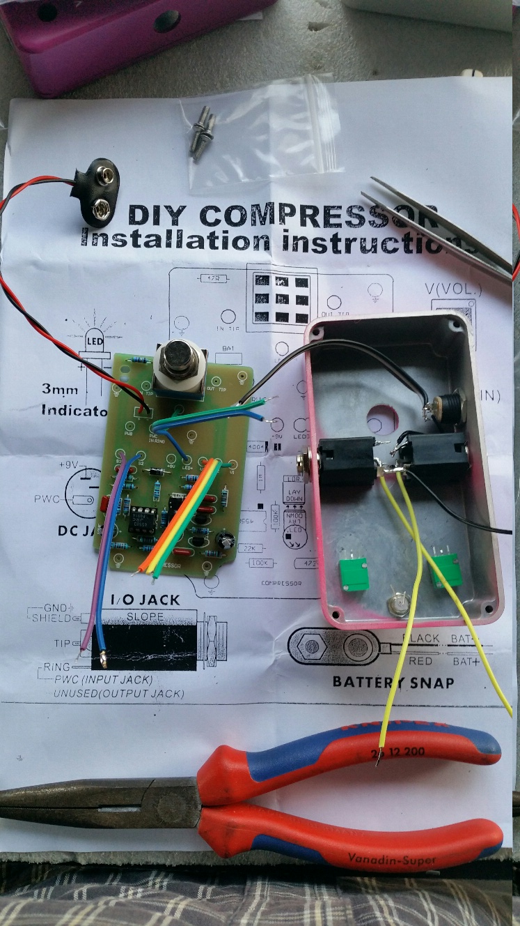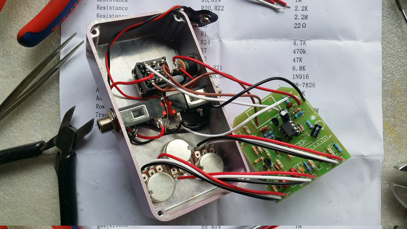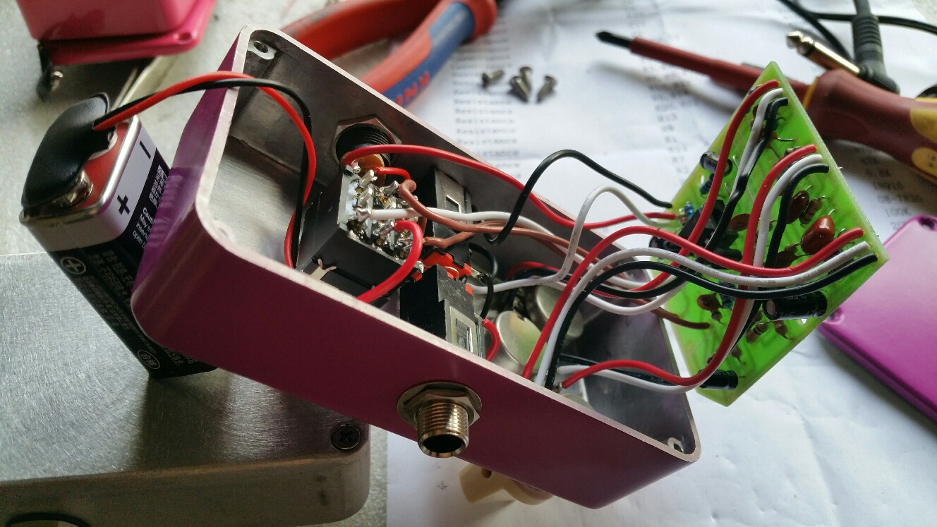 Got it together pretty easily, connected a battery, plugged in my test axe and Vox Pathfinder 10 amp.... and it made noise. Through some sort of Friday the 13th miracle it worked first go... Very happy.... It even sound half decent, but only if I pushed the 'Drive' past 7 or 8... Tone and volume also work as they should.