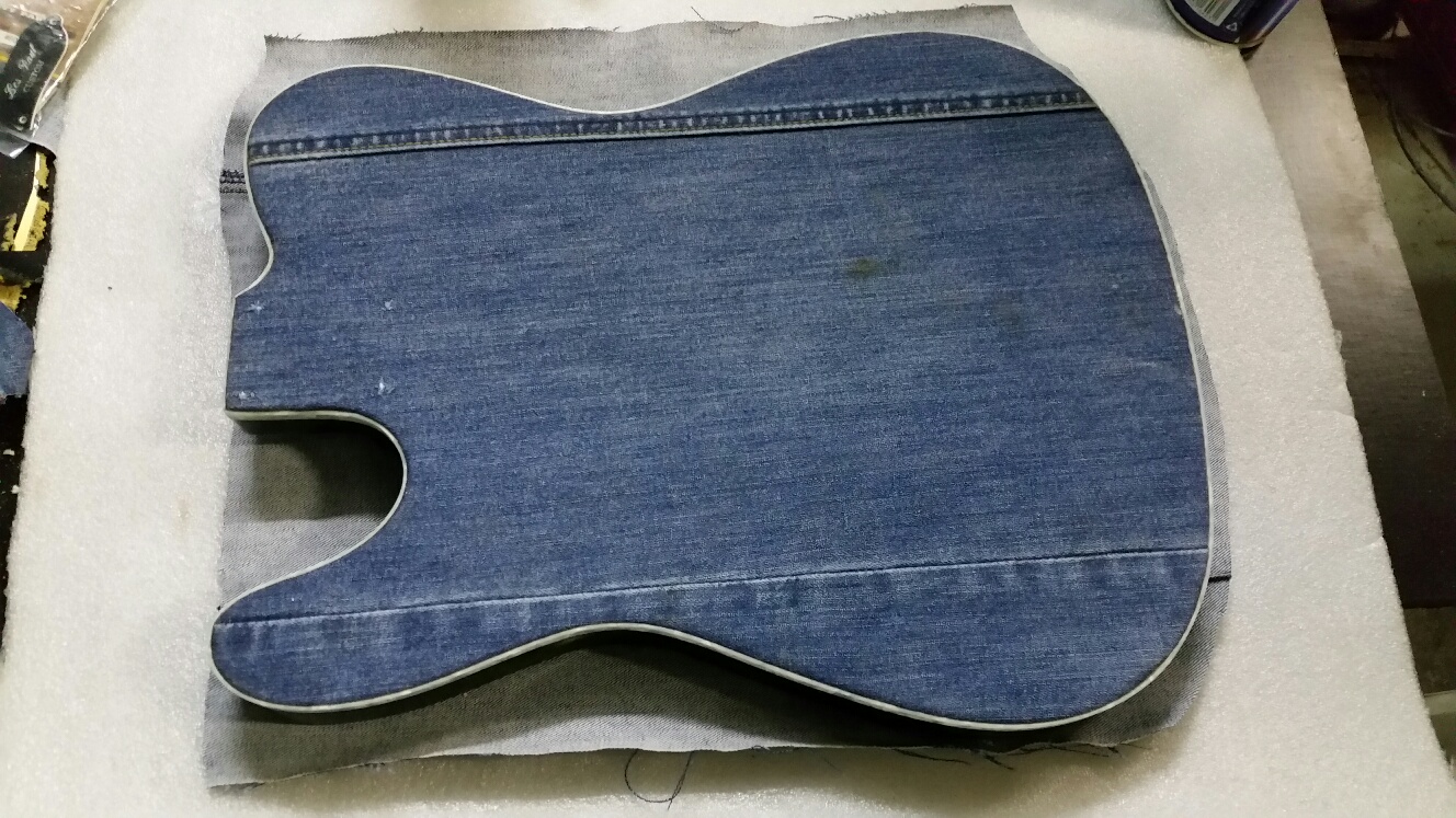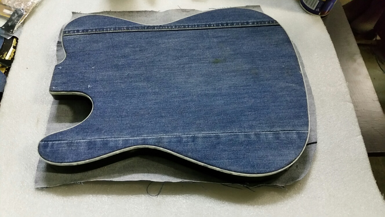 Rear binding done and dried. Front denim glued and drying...