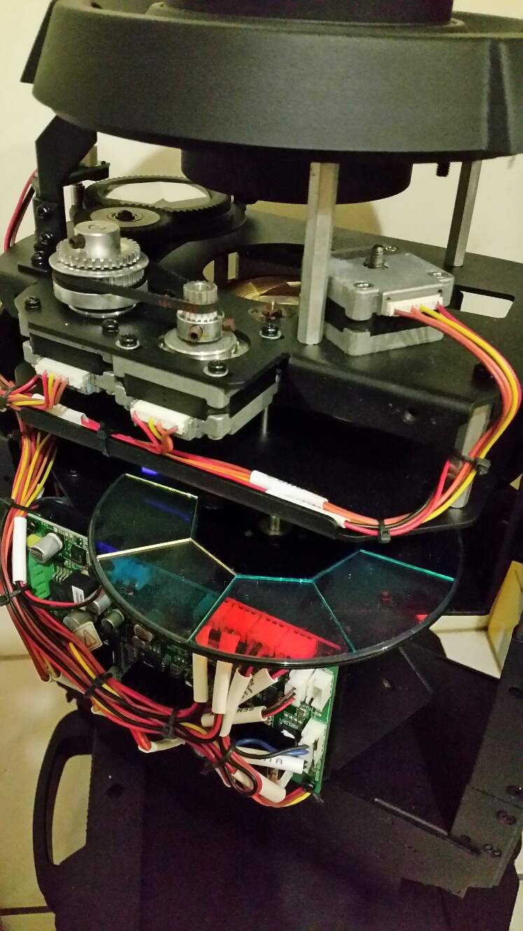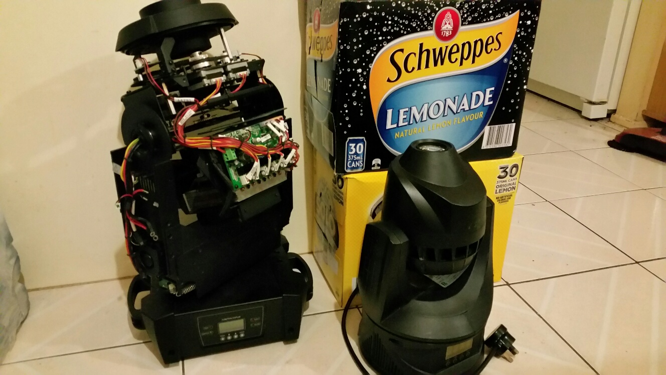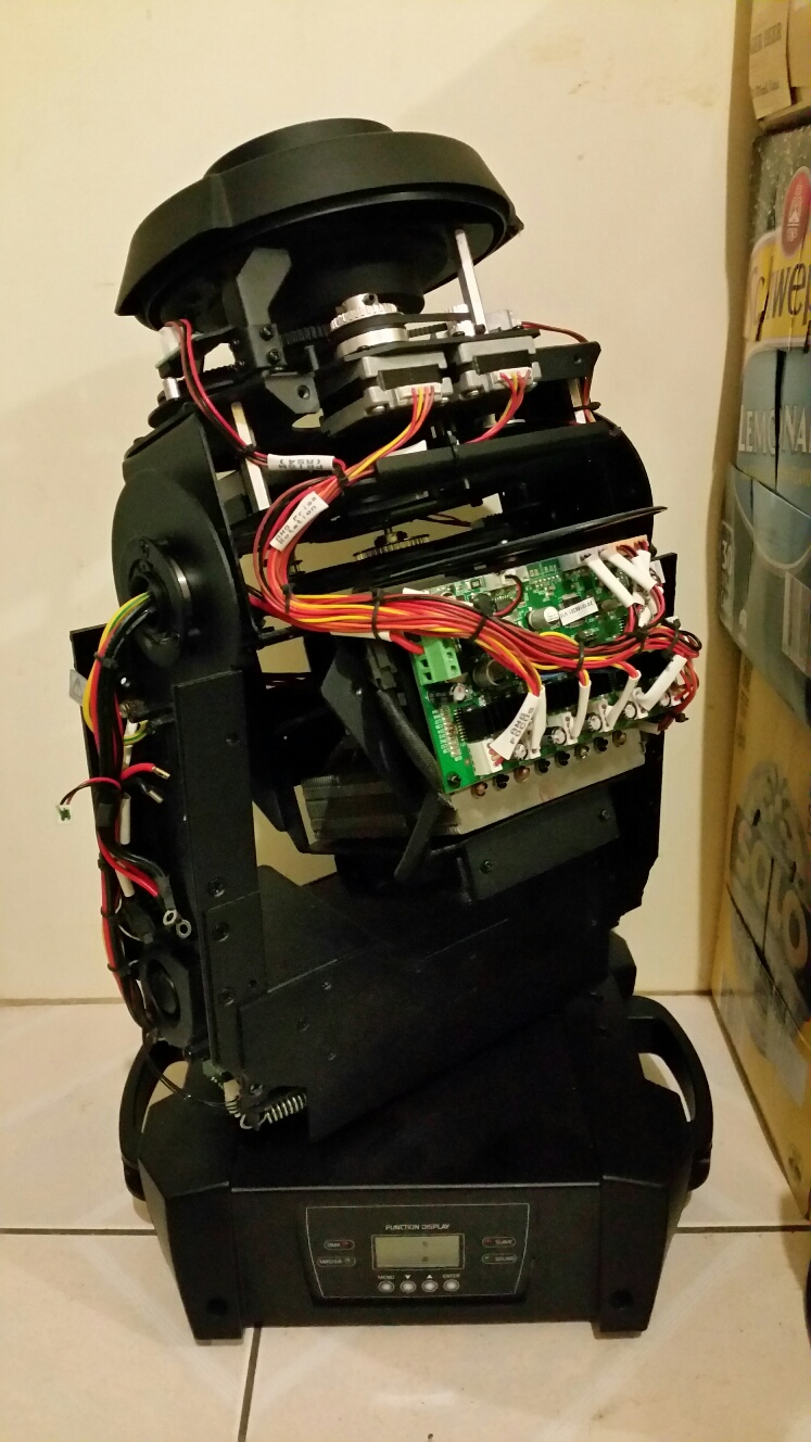 I'm working on a $2.5k 150W LED moving head DMX spot with selectable gels/gobo's at the moment and it's proving to be quite the challenge (and with the covers off is often blinding) to fix. Lets just say the onboard controller is giving me an attitude problem with the fixtures errant mechanical and electrical behaviour...Things like focus, gobo alignment, gel selection, X & Y trim, motor & LED temp & current settings, and cleanliness are just some of the things to be examined... The 55W little brother I worked on just prior was a walk in the park by comparison...