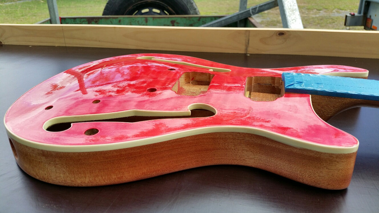 I'm using Cabot's Cabothane clear poly in 300ml rattle spray cans. Satin on the neck and gloss everywhere else.