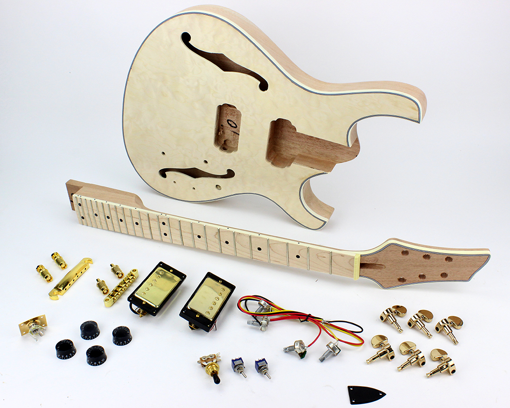 And this GPR-1M and GPR-1B semi-hollow body kit with Chrome or Gold hardware and Maple or Blackwood fretboard.