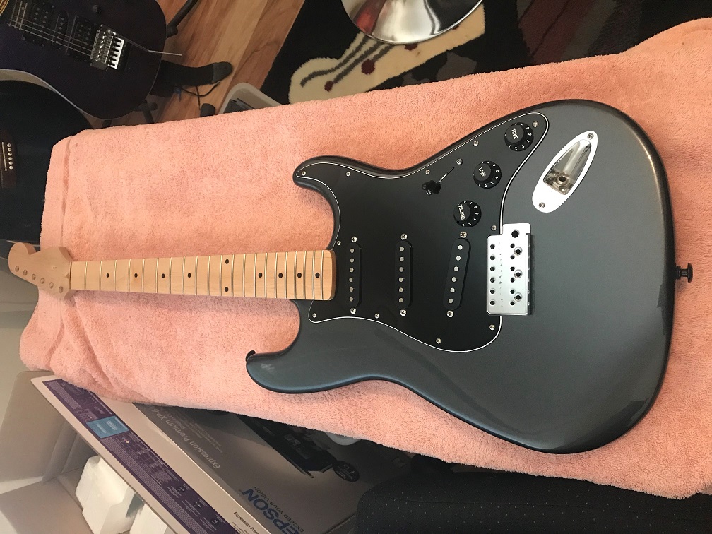 body is all polished up where it needs to be but ignore the white scratch plate as that will be black along with the pickup covers and knobs etc, and the Babicz bridge will be used.