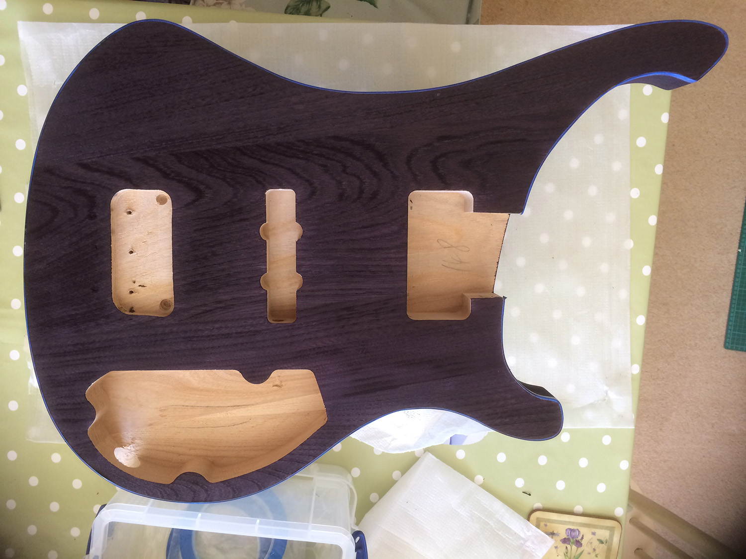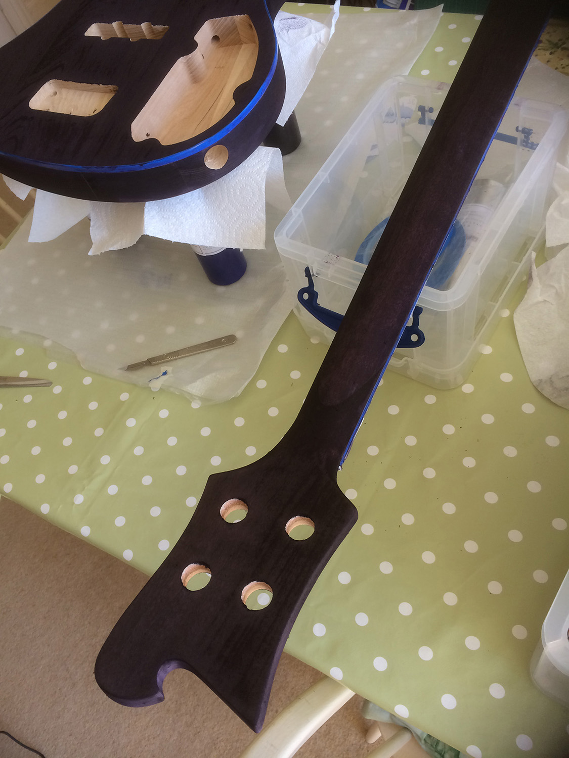 first coat of stain... using a 50/50 mixture of purple and black Crimson Guitars Stunning Stains...