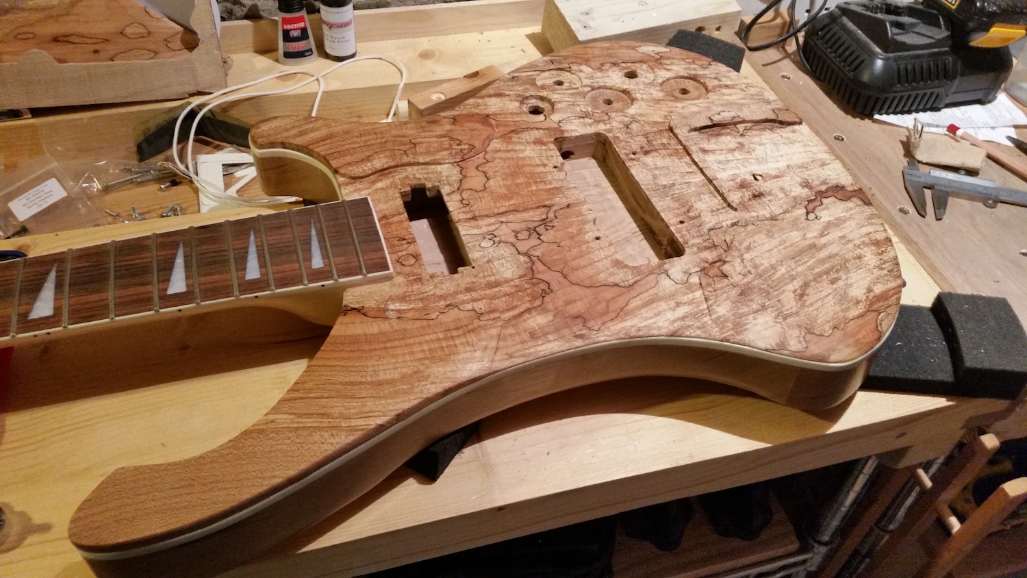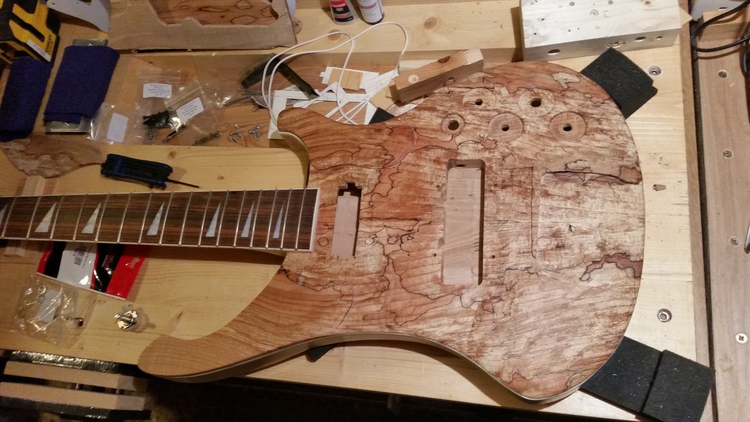 Almost complete and by now quite playable. Although I could quite happily just sit and look at the Spalted Maple top.