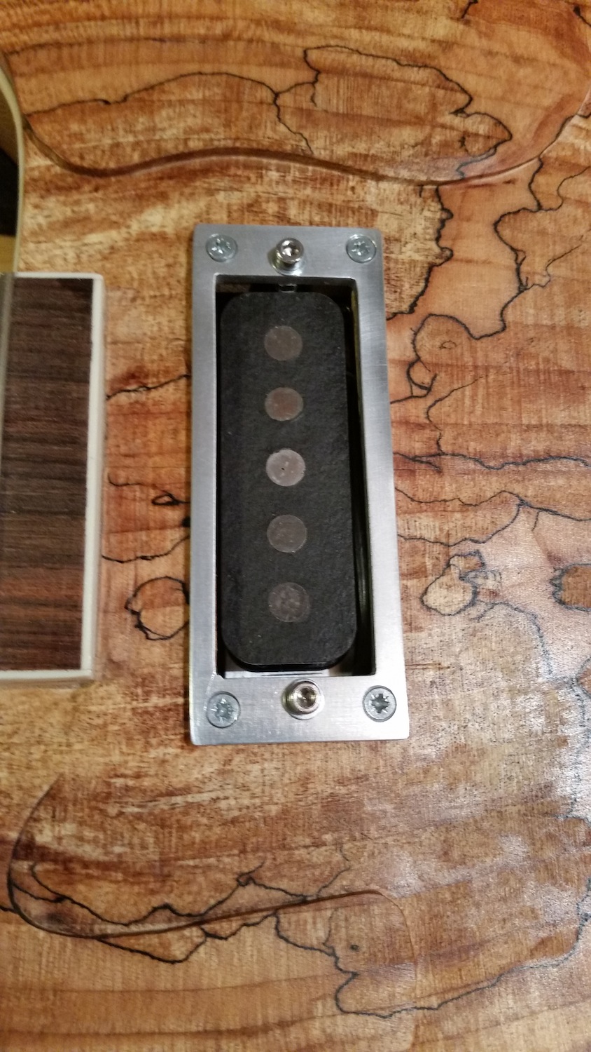 It was very hard to know how thick the Spalted maple top was, so carefully recessing the controls was trial and error.