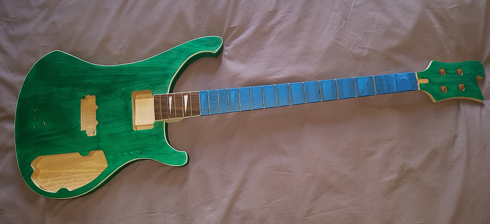 In my first post I said I was wanting to get a green stain on the timber and posted a picture of someone else guitar.