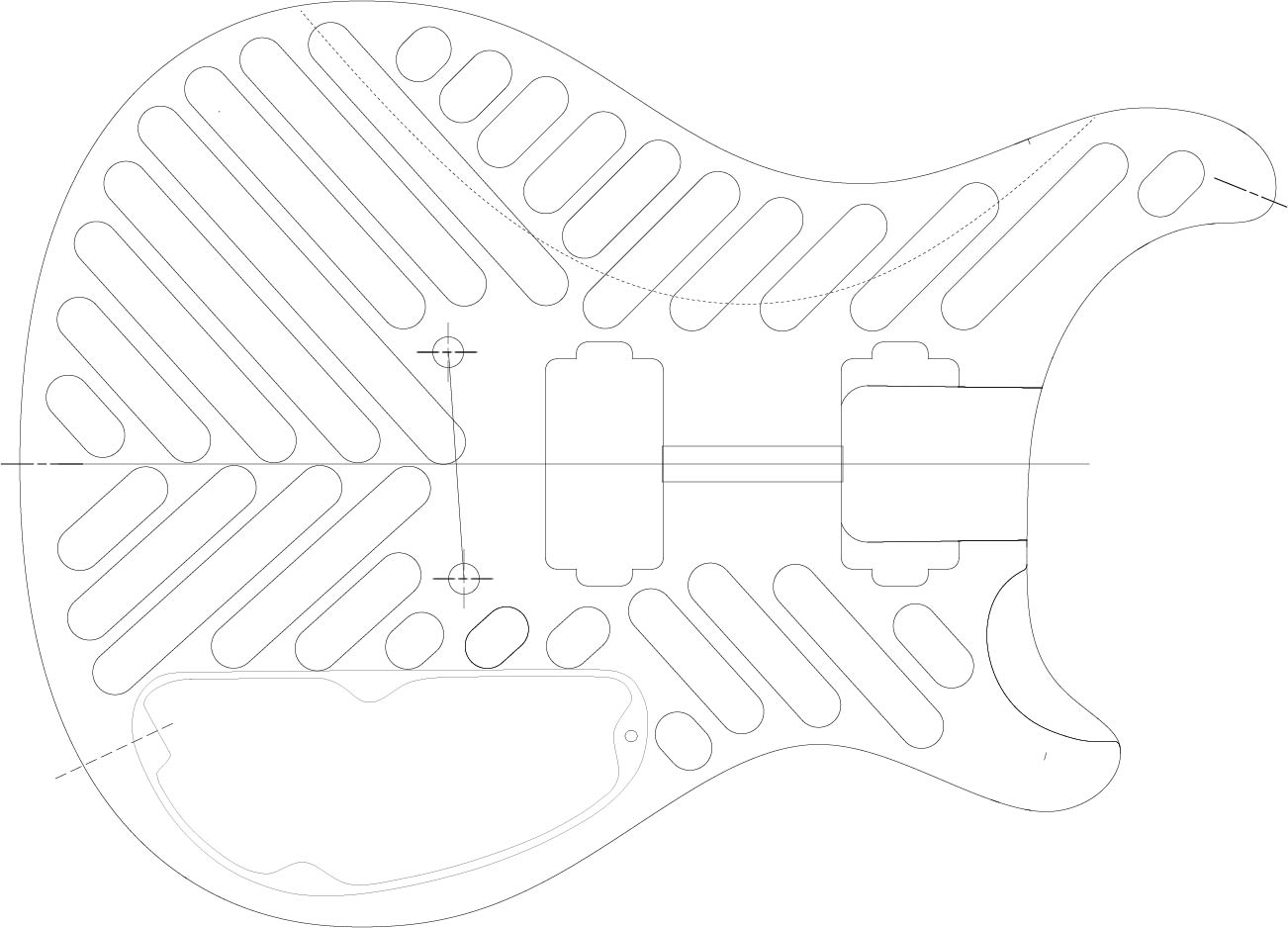 It might be TK, I was thinking of ways to lighten the headstock as well, potentially some lighter tuners and through holes. Perhaps a slightly off set rear strap button etc. The body blank is some fairly weighty African Mahogany, it will be getting a 12mm Blackwood top (or zebrano) which might offset tings a bit