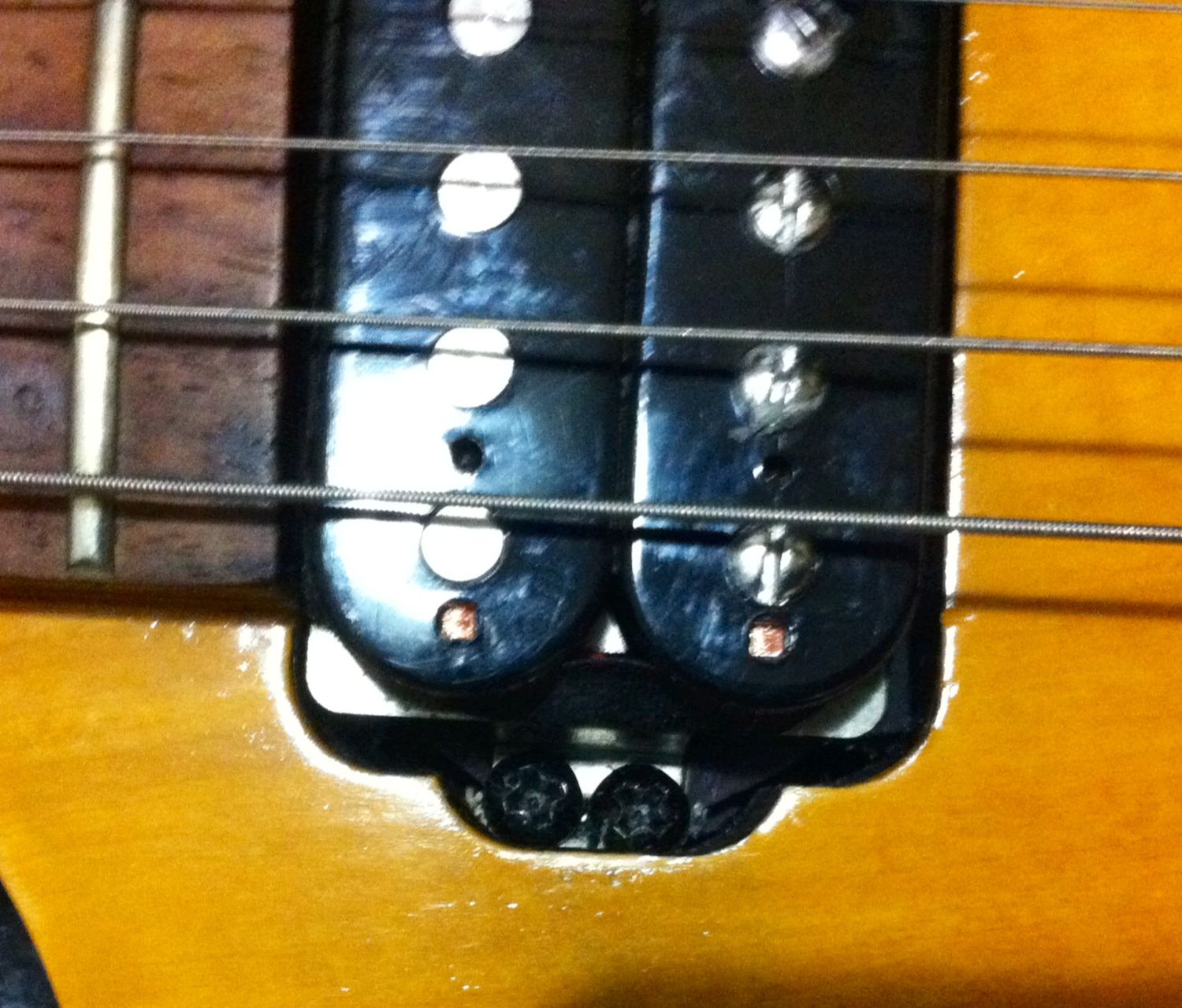 It took 3 attempts before I got mine with pickups sitting at the right height. The long J Bass Pickup Mounting screws sounds simplest but there are deep holes on either side where the PUP's are normally mounted on those plastic rings however the part with no thread near the head will be a problem as that will require that hole to be drilled out and then no longer able to be used with a thread.