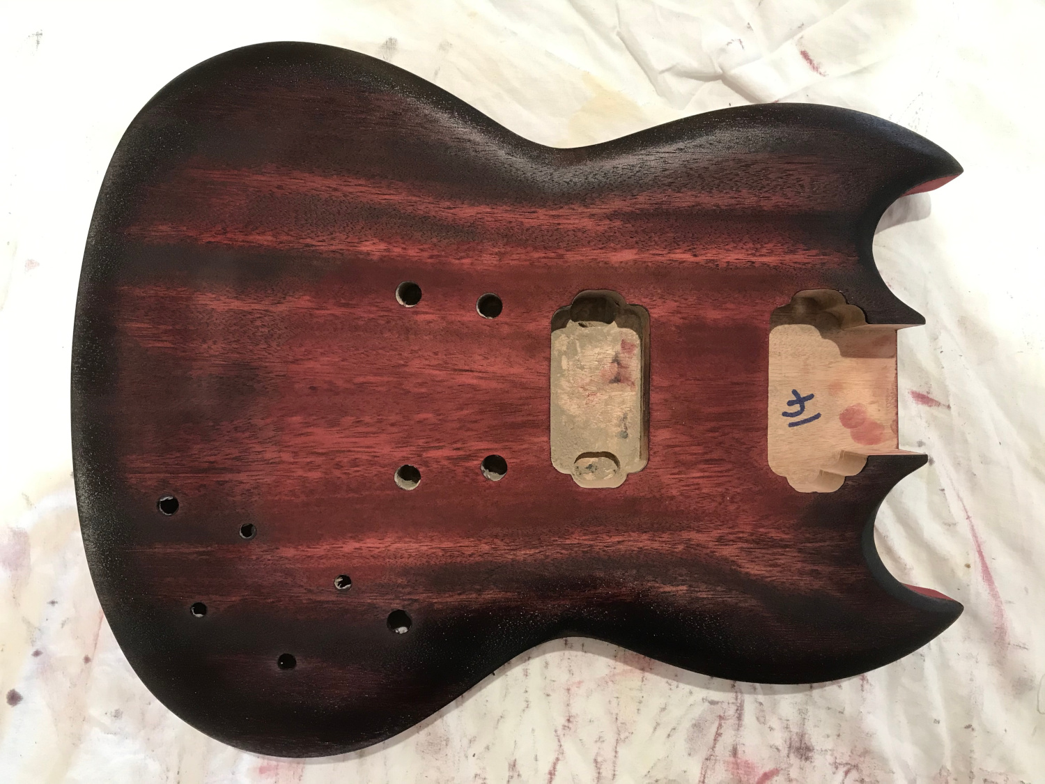 This is a timely thread for me. I'm finishing a GSM-1 at the moment. My first attempt was with Feast Watson Prooftint in mahogany with a black burst. This was after applying Ebony Timbermate, but no sanding sealer.
