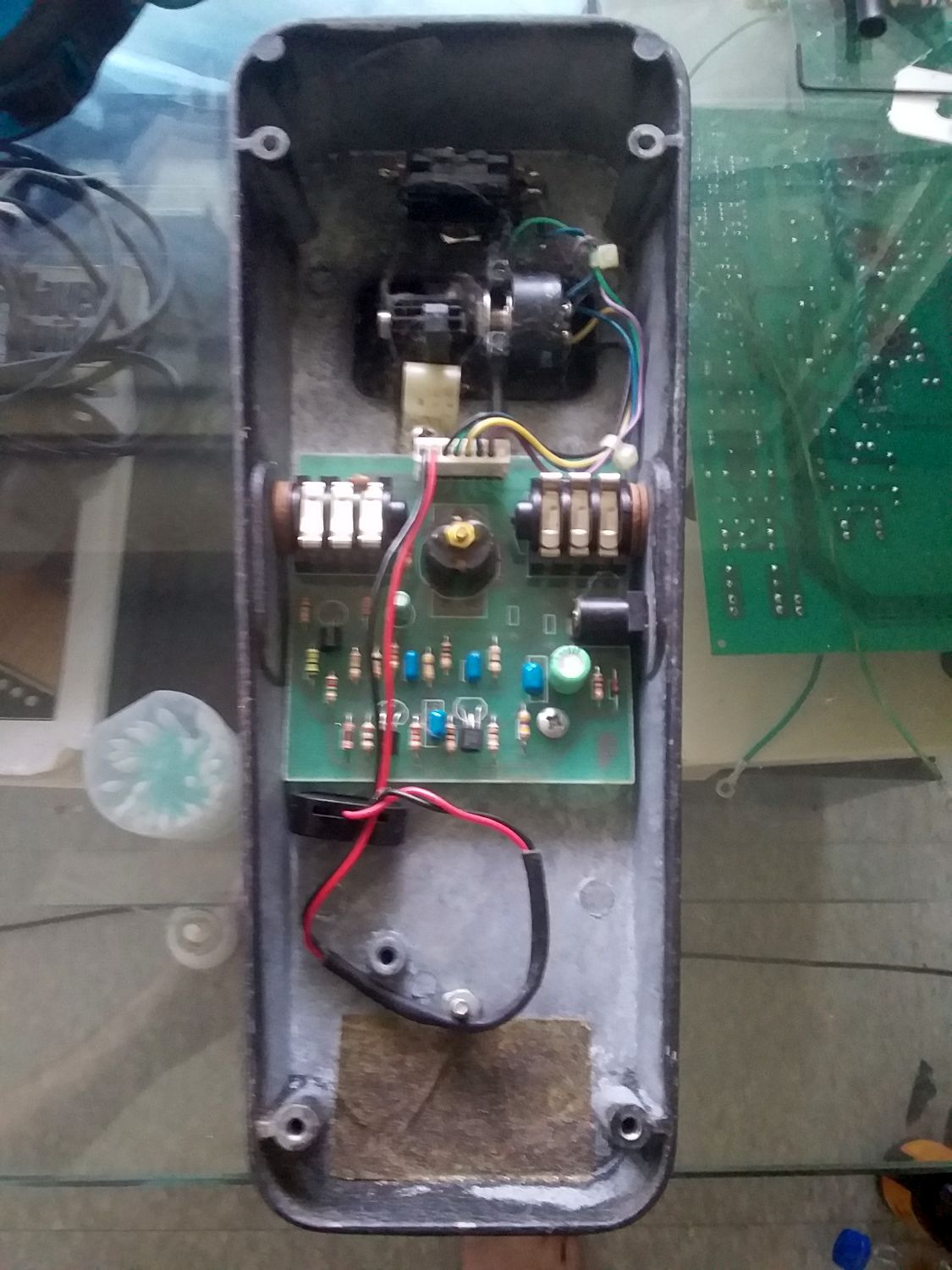 Finally found my Jim Dunlop Crybaby pedal, so here's a couple of pics of the internals: