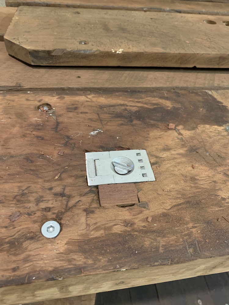 I replaced the old-school timber bench stop with a flush mount job from Carbatec.