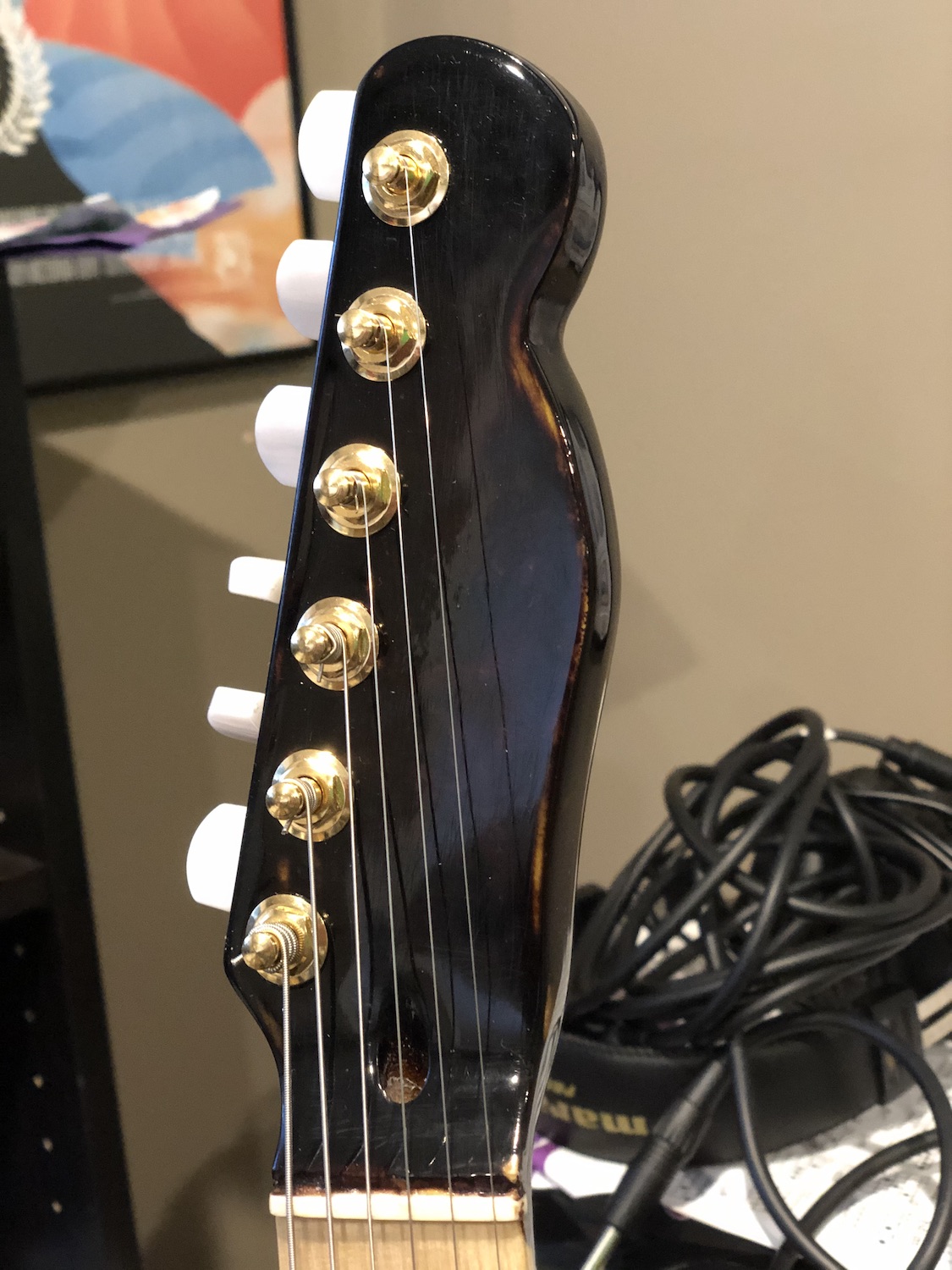 I finished!! Here are some pics. I originally dyed the headstock yellow and had custom tuff dog decals. The color was not great and the decals were rippled, so I repainted with encore brown lacquer and then more clear. I wet sanded, and polished the enter neck then put everything together and strung it up. I love the way it looks and sounds. Thank you all for your tremendous help.
