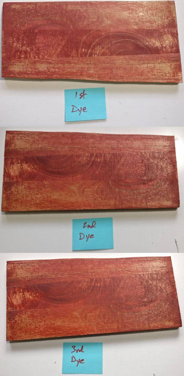 I did not take a pic of my original test, but I did that with AquaCoat first the pure General Finishes Dye Stain (no 10% top coat added). What I remember is that the results were similar, and maybe a tad worse. It could be that the added top coat helped the dye stick to the mottled places so it was not quite as bad. Or it could be that I don't remember perfectly.