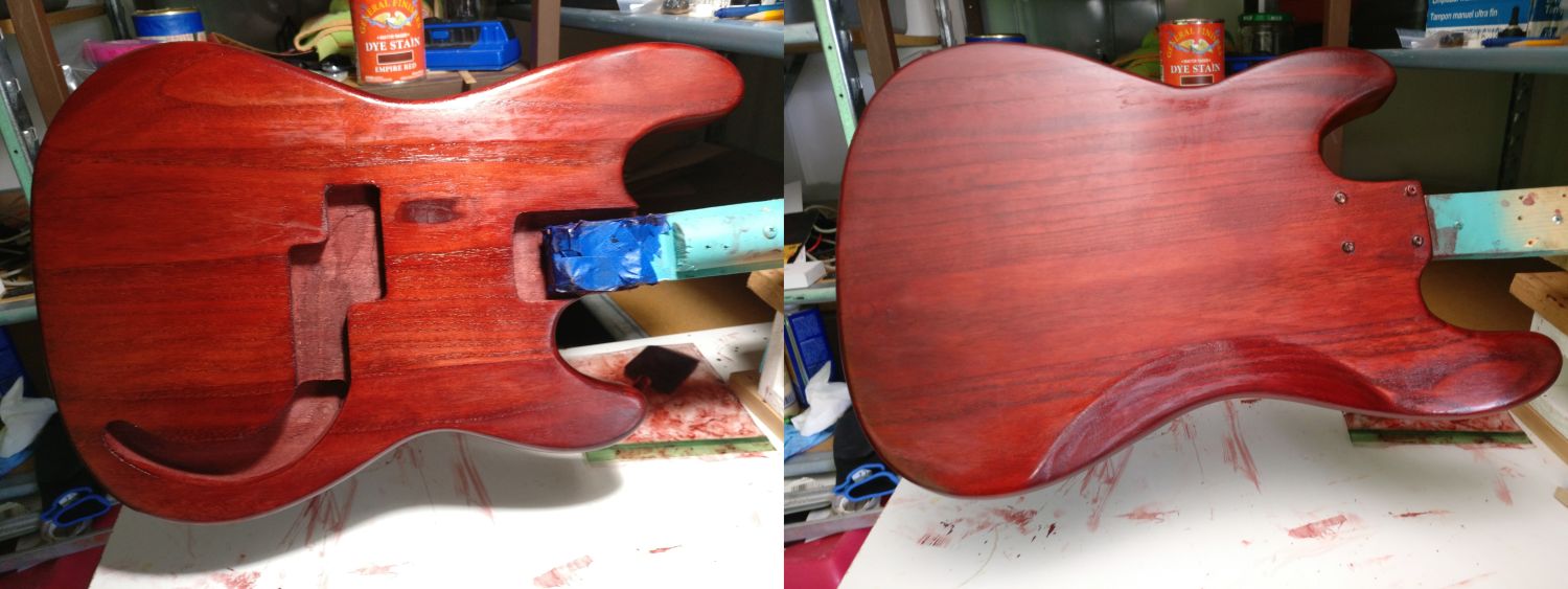 Comments about applying the filler first and then the stain got me to refer back to where I heard about Aqua Coat in the first place: Simon's SG builds: https://www.buildyourownguitar.com.a...t=10423&page=3