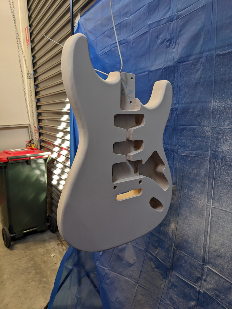 Ignoring the neck for now, I decided to move on to some painting. Will have plenty of time for neck work while I'm waiting for curing.