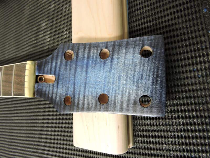 After gluing on the venner had an opportunity to colour the headstock today. Still not over the moon about it but looks a lot better than it did before.