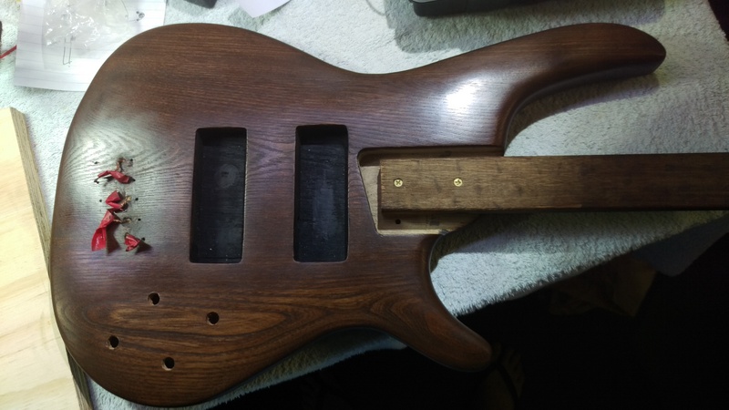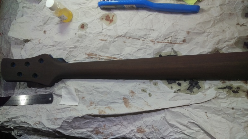 After a few tests, mixing DT walnut with Black Stump, I found a mix I liked, and I started applying to the neck.