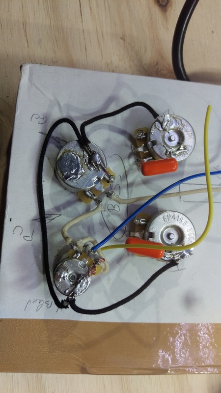 And I reckon I used the .047mfd orange drops that were meant for a normal guitar instead of the .022mfd I was planning to use... may have to change them later...