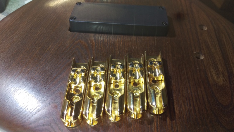 I then installed the 5x bridges, earthed each of them with the copper wires I had laid before finishing, and managed to get them looking almost parallel! Wasn't a given... I never thought it would be so hard to drill 2x rows of 5 holes perfectly equally spaced... I guess I know now!