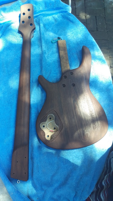 After an initial attempt with DT final coat where I wasn't too happy with the result (it was DT Mk1), I decided to do the top coat of the bass with Aussie Oil. I really liked how it worked out with my 12 strings, so easy to apply and looks great. So I applied five coats, then wen ton holidays for 2 weeks, and then reapplied 5x more coats.