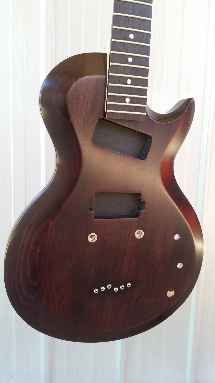 as always Grant you build a top quality axe, love the shaping and staggered string through holes, this is going to be a classy axe when done. Love the deep red colour too !