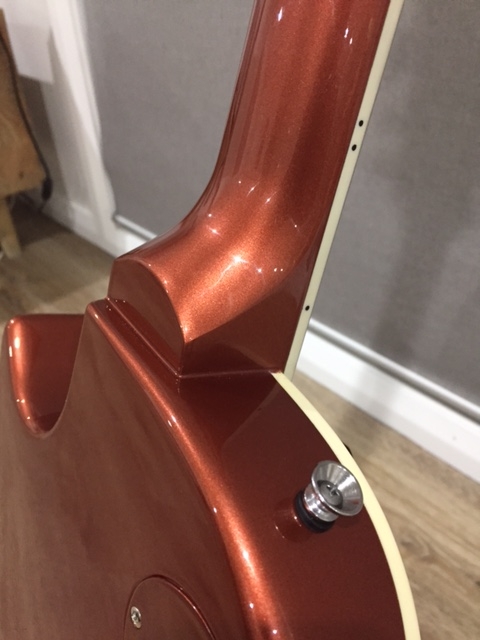 love the Slash LP Slats, the paint and clear coat look professional. Love the copper bronze and gold top. You should have spent the time to shape the headstock is the only negative thing