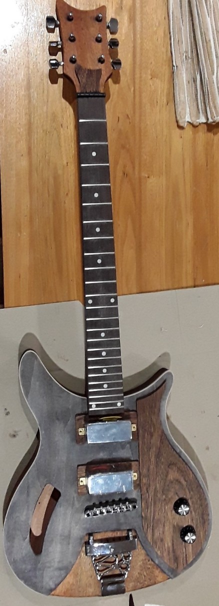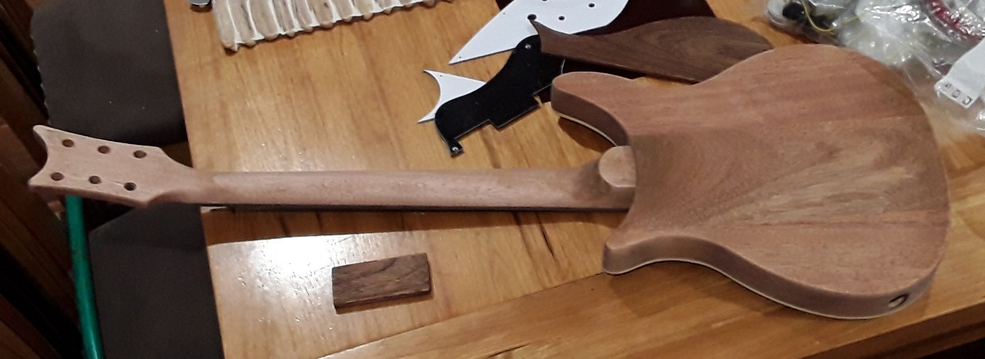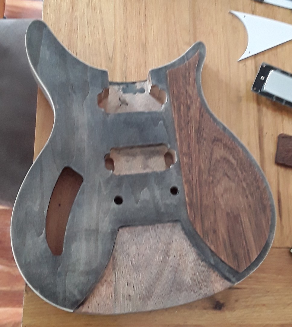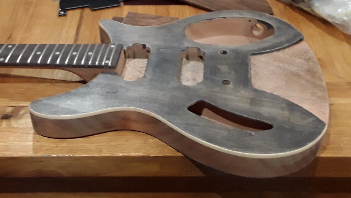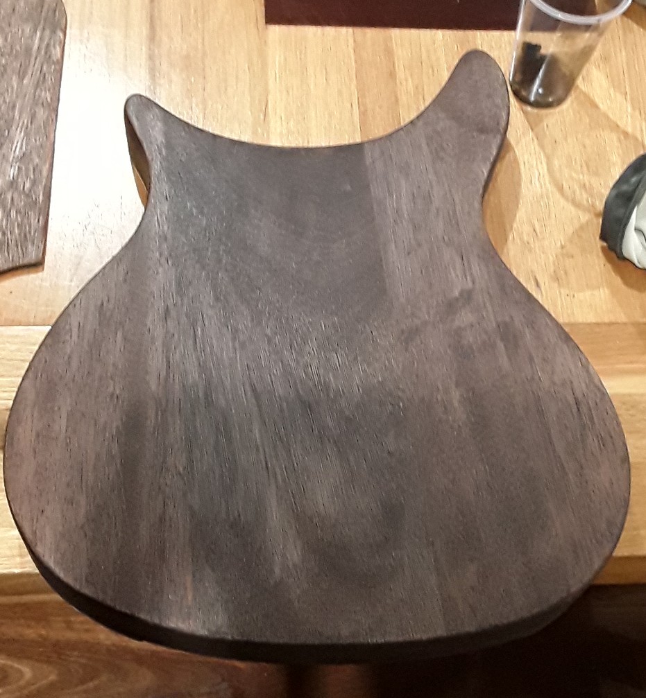 the original plan was to have the guitar 2 tone but the meranti has gone a lot darker than the mahogany, but the three colours are actually growing on me i quite like the look