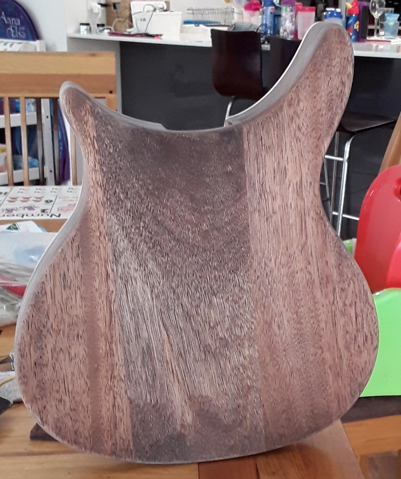 Got up this morning and the black on the mahogany looks horrible big mistake, its the first real boo boo ive had in the colour choices of the 4 guitars ive done so far, sanding it out is going to be a pain