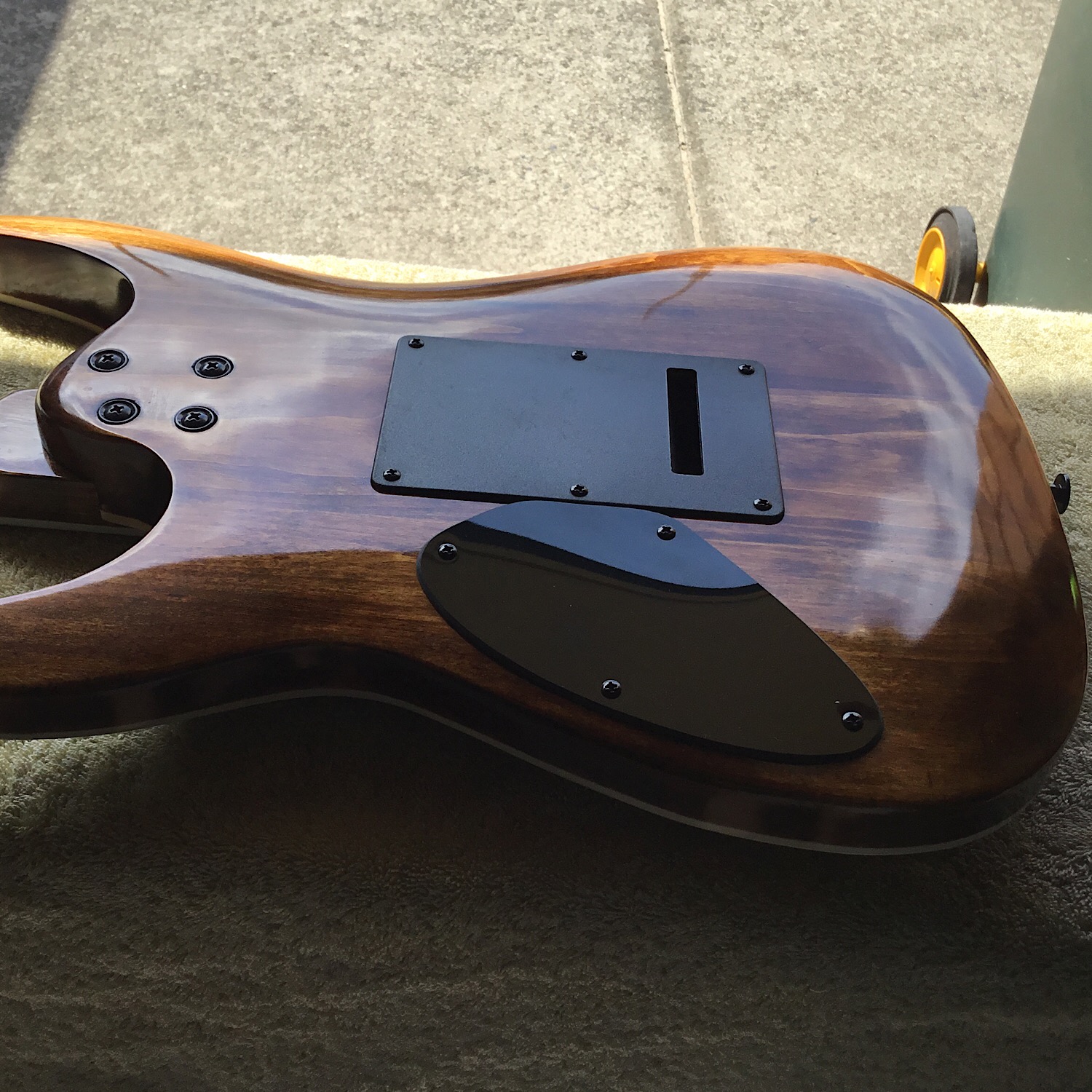 Spent a couple of hours on the wiring this afternoon, soldering is not my favourite part, but I got it done. I gave it a bit of a test with the amp but I can’t really tell if it’s right till my hearing is right. Then I added the back cover plates.