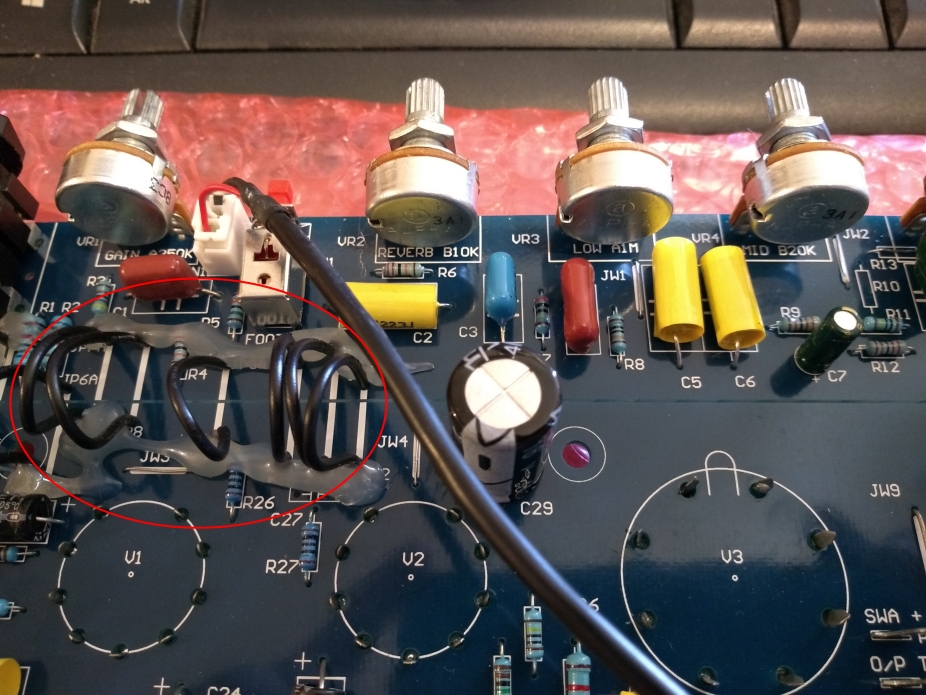 They designed this section to be broken off the main board, but installed close to it in a similar relative position. This would mean the valves are hard up against the rear of the front control panel, possibly coming close to (if not touching) the speaker.