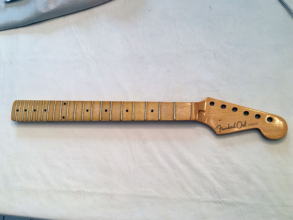 After a couple more coats Tru-Oil on the neck and over the decal, the neck finish was done.