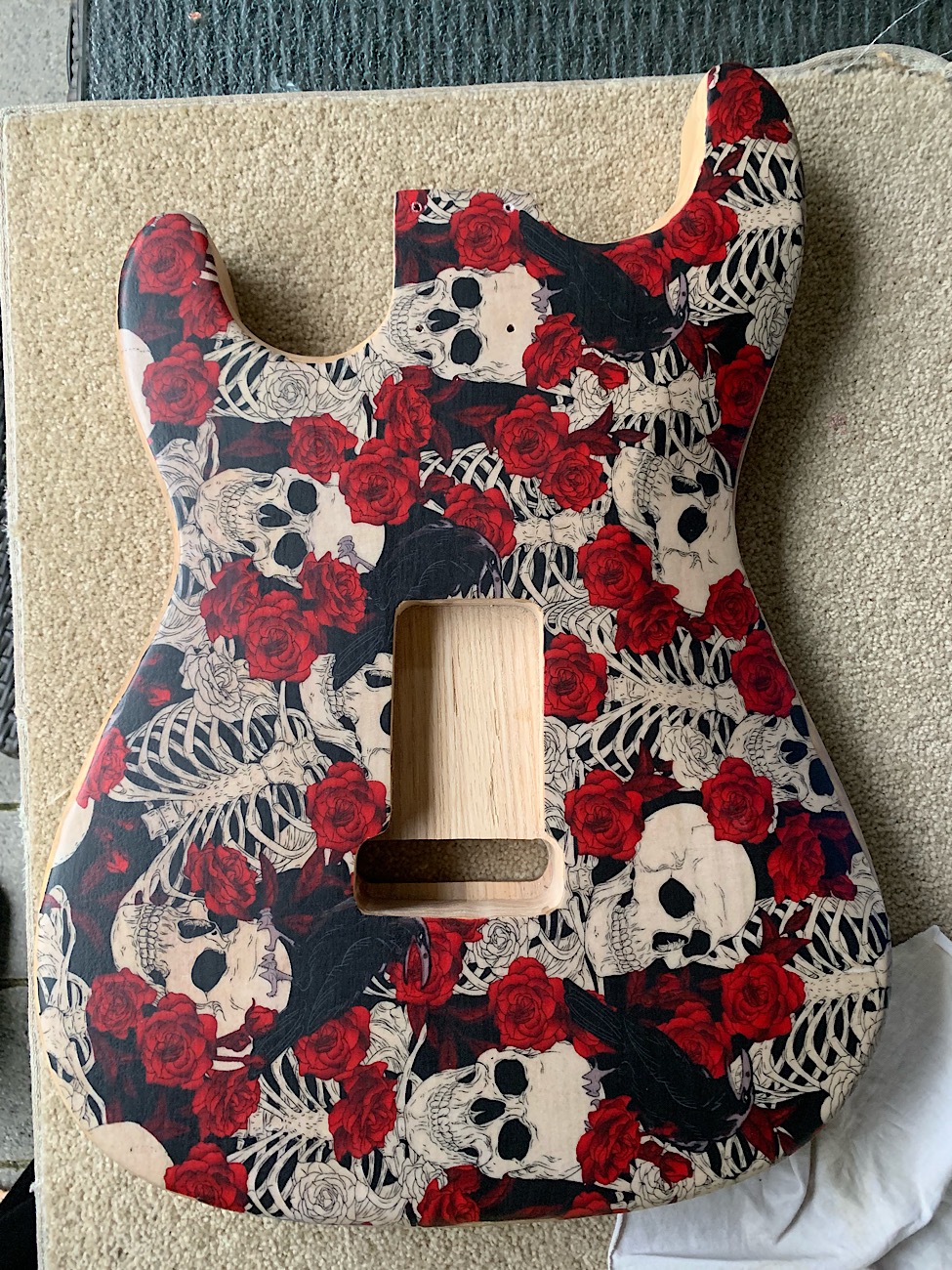 A very thin burst added as I wanted to ensure that as much of the fabric will be seen once the pickguard is on