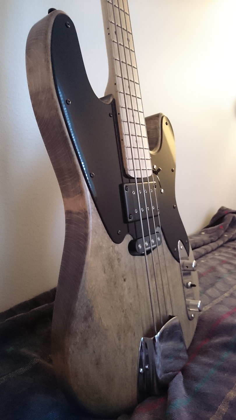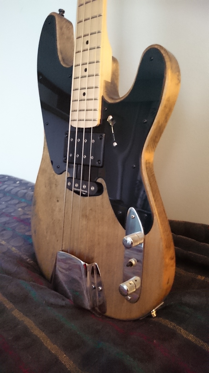 I think this build is one example of what you could do with a "bare" kit if you had the option to just order the pre shaped body with just the neck pocket routed. You could more easily then route your own pup cavities of choice when you first just attach the neck and position the bridge. A blank canvas to experiment and put your own vision on it. One cool option would also be to order pre shaped scratchplates if one would for example want to make a P bass with p51 single coil pup, a humbucker, some sort of combo etc. The option would be good for people who have maybe done a few "all included" kits and want to move on to a little more challenging work but don't want a total scratch build just yet.