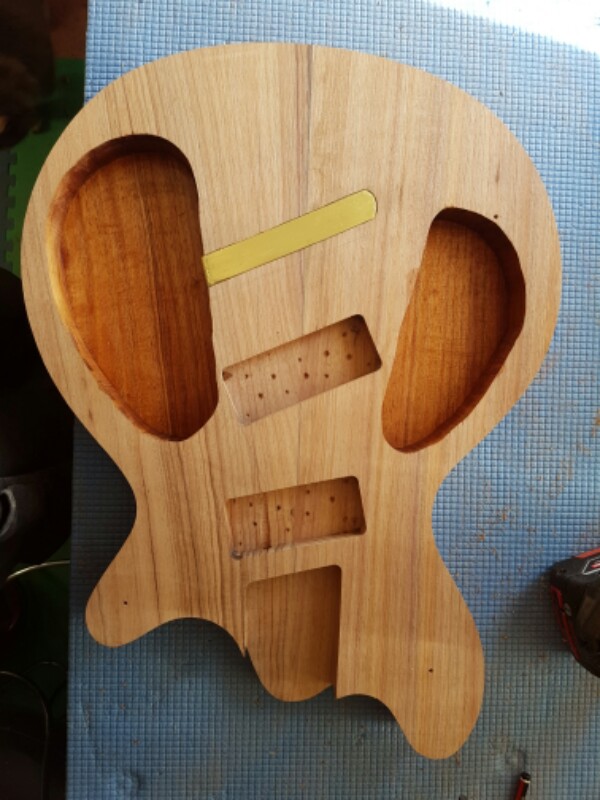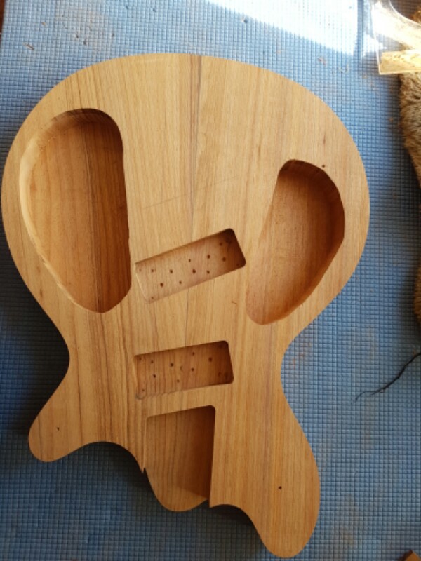 Body will be Tassie Blackwood with an as yet to be specified drop top, neck will be a laminate of Blackwood and a few other super secret but very tasty Aussie timbers..