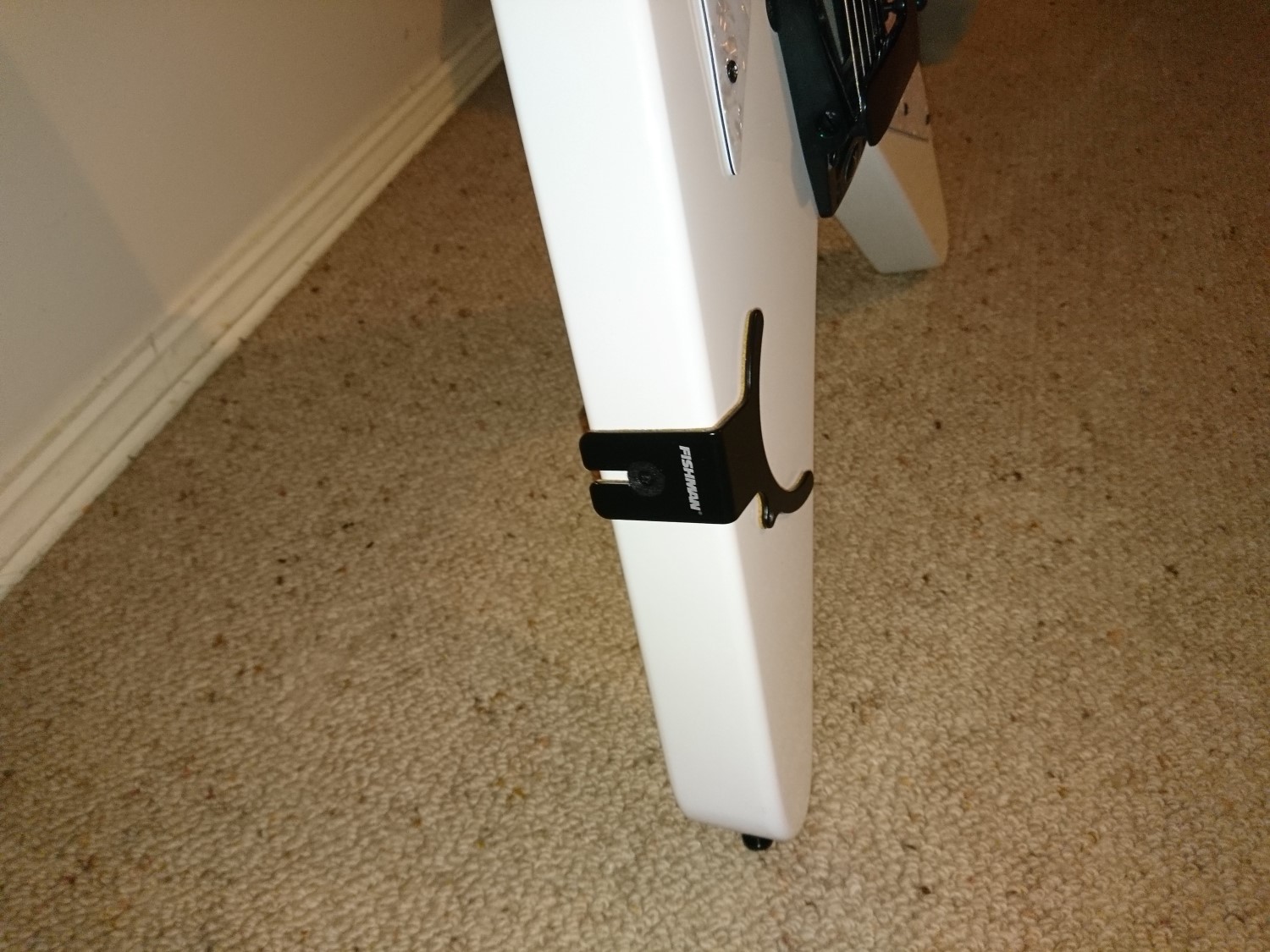 Since I've also got a Fishman Triple Play now, I also popped a screw in to the top side, so that I can attach the mounting bracket on to the guitar, because the cable doesn't make it all the way down the wing of the V to the strap button.