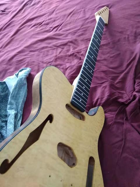 I've read that the Tru Oil needs time to fully harden but the recommendations for how long are all over the place. Anyway, while it's hardening I'll get started on shielding the cavity and drilling holes for tuners, strap buttons etc.