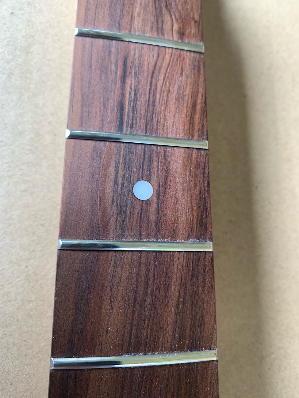 Completed the fret level on my neck today. Might need to have a bit of a redo as I am not 100% happy with the outcome. Frets all over the place so I actually had some that flattened out fairly badly and dont know if I have them in a nice enough dome. Anyway will mull it over and may even see how it plays and do a redo after the guitar is together.