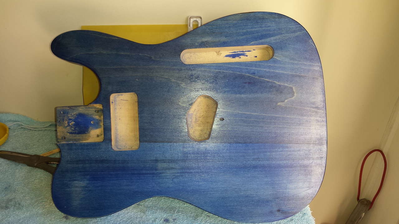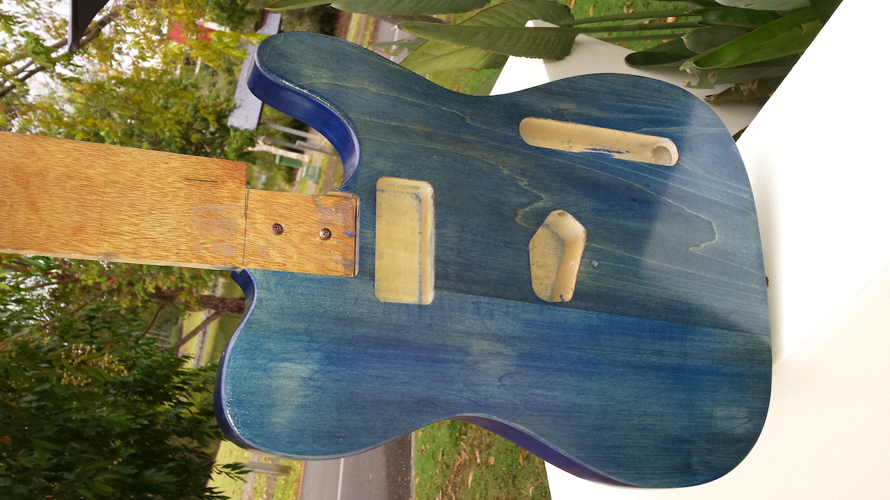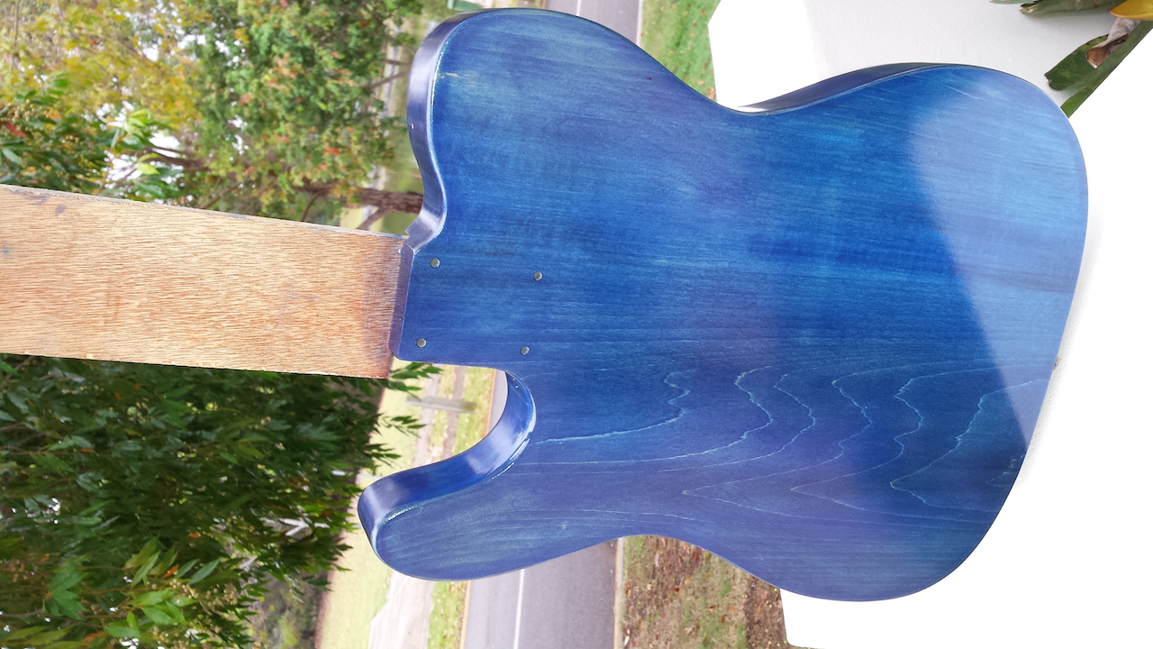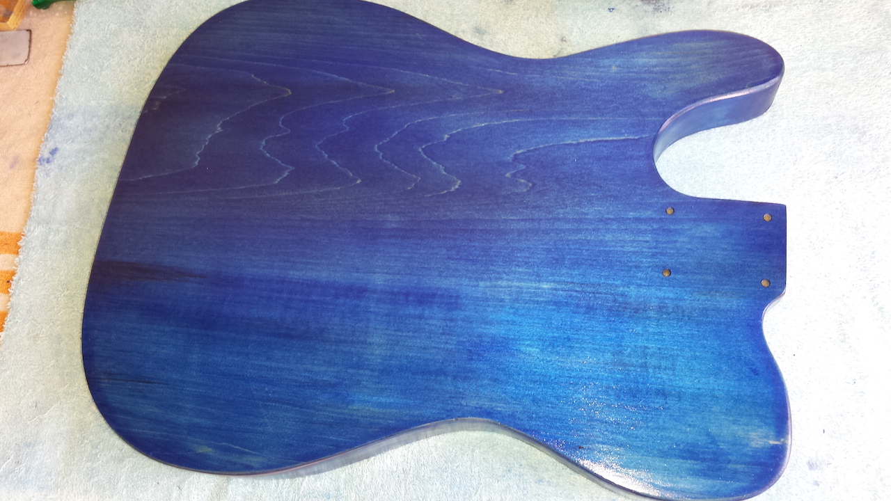 I am looking at using ink as a base for staining a tele too and will experiment to see if I can tint Tru Oil as that is what I have been using as a clear top coat on a couple of other builds. Maybe just a small amount of blue tint in a clear would give your top that bit more depth you are chasing.