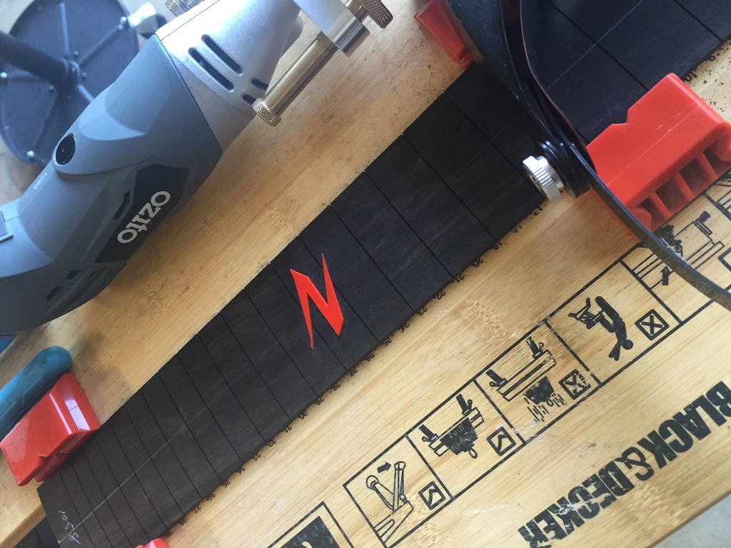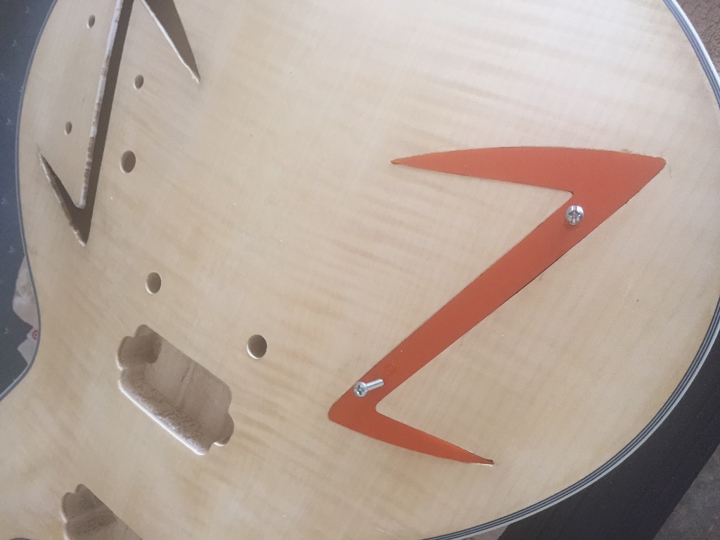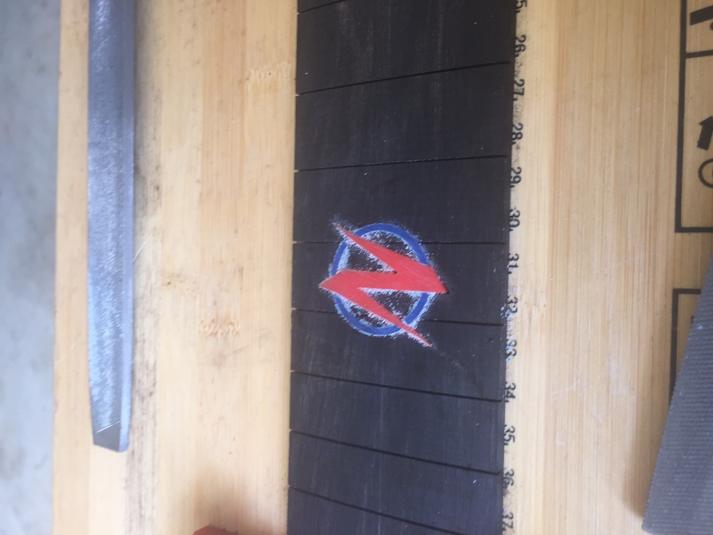 Started routing the fretboard starting with the Z. once that was ok routed for the remainder of the inlay. Drilled some holes through to let light in, but may not be enough and may have to join some up to create larger openings. A bit concerned of taking too much out and the frretboard breaking out. Have the routing to the point where the pieces fit close to final position.