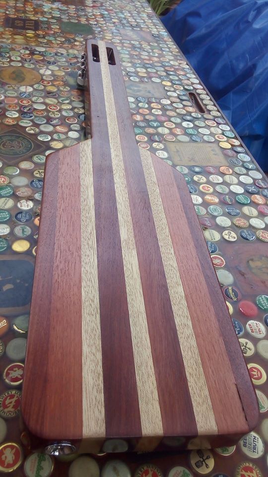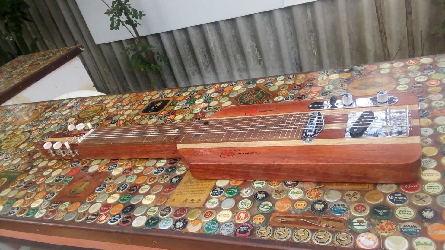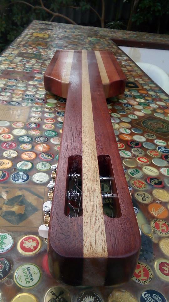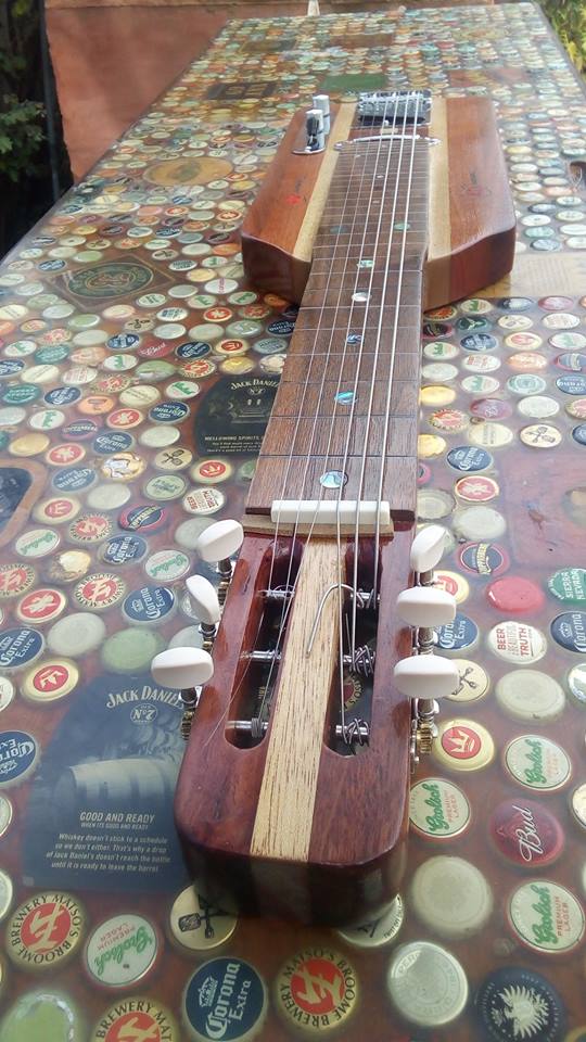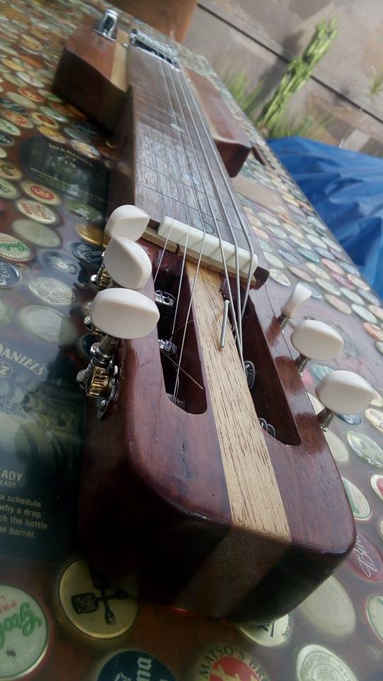 I've put a temporary bone nut on. I've got a wider blank to slot the strings a bit wider. Once I've got it set up and some different open tunings I'll post a video.