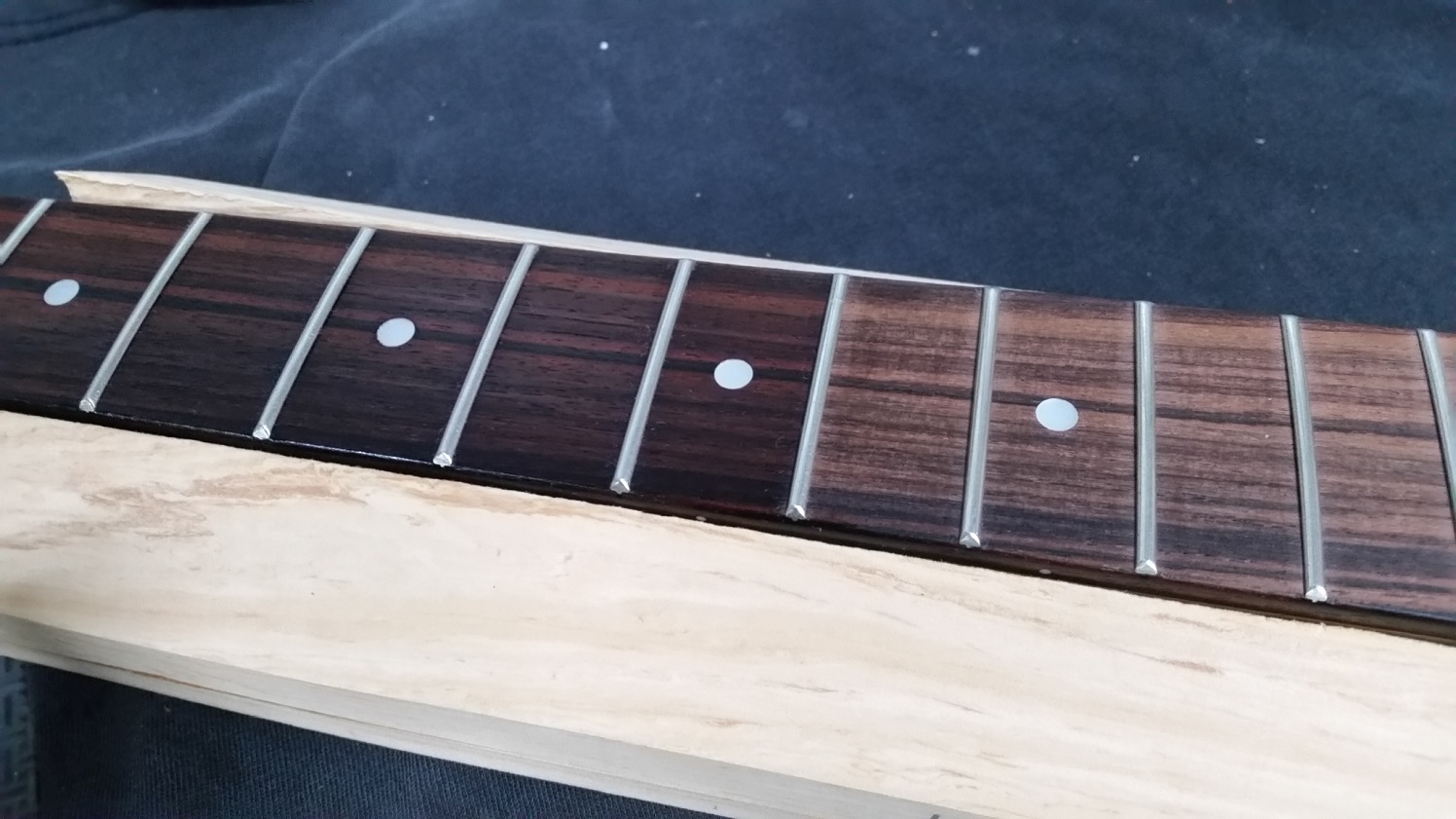 Over the time (years) it's taken this one to get done, the fretboard has dried a little bit. This is just the first wipe on of DrDucks, up to three and am sure it will need more.