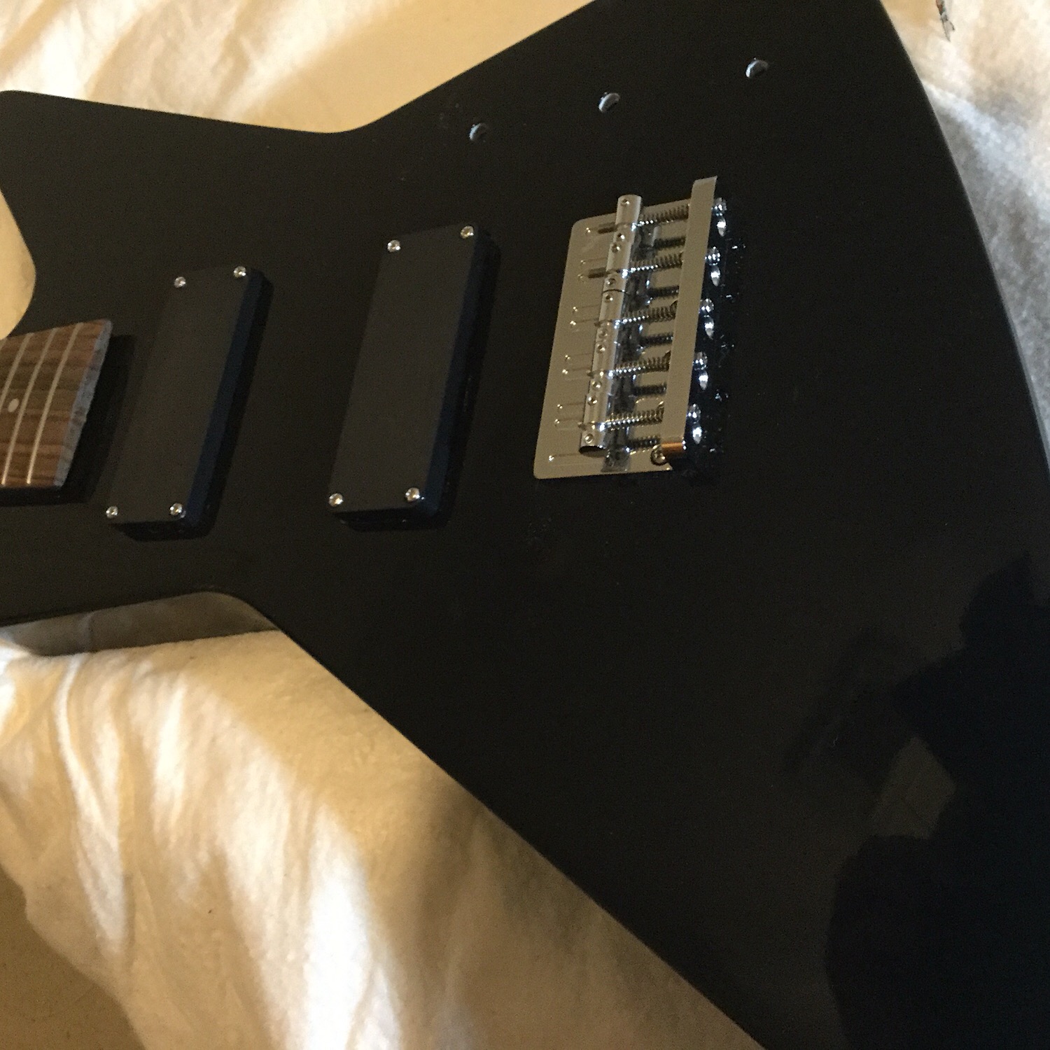 I finally completed my EX-5 Bass this afternoon. I had a tough time with the pickup springs not compressing enough and finally ditched them and used foam rubber under the pickups instead.