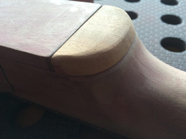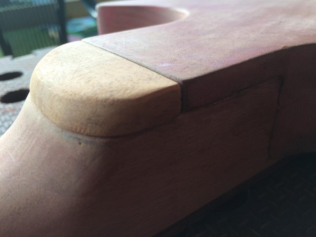 Held it in place and mimed playing up that end of the fretboard and once the transition is puttied up it should be pretty comfortable.