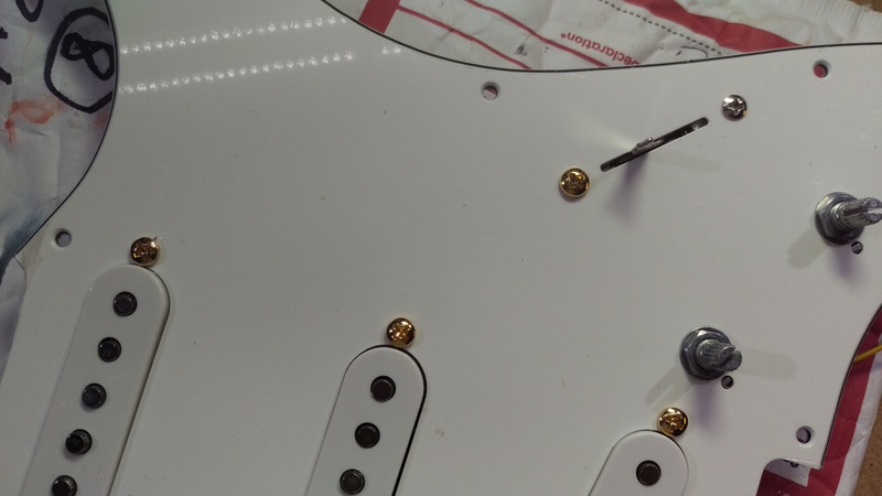 I had ordered gold screws for the pickups and the switch as I didn't want to have a few chrome screw heads next to the pickguard golden screw heads.
