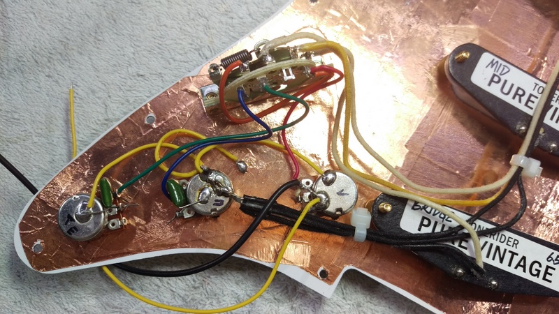 Next I installed the tonerider pure vintage and re-installed the pots and the switch.